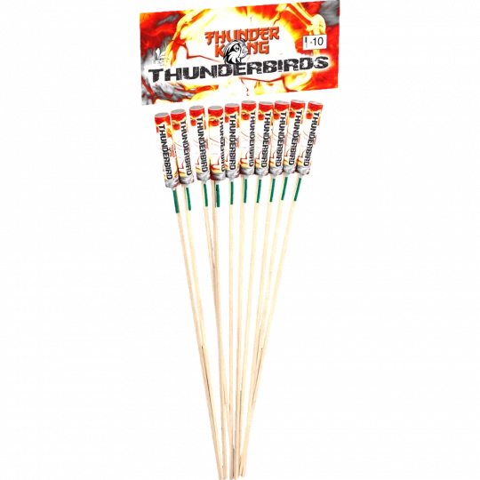 Kräftige Pfeiffraketen aus der Thunder Kong Reihe mit Knall und rotem Effekt.
